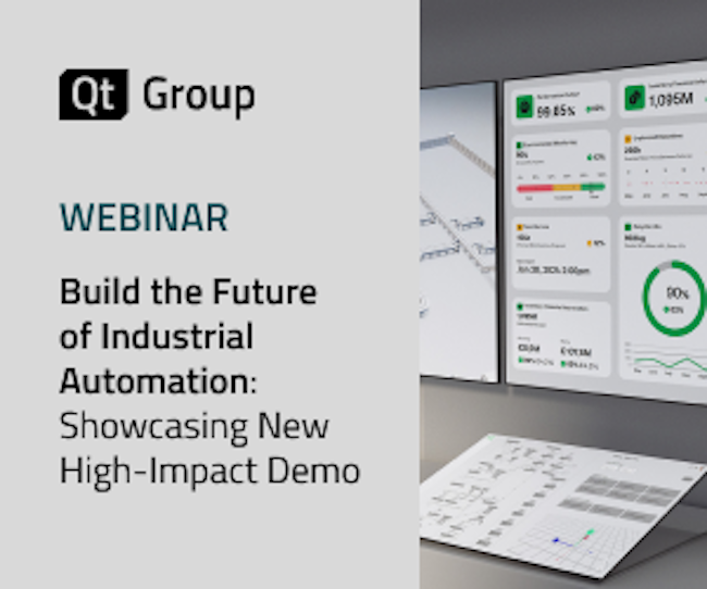 | | | | Sponsored | | From The Qt Company Join Qt Group's webinar to experience a high-impact industrial automation demo. This expert team has created a vision for the Smart Factory of tomorrow. See a 3D factory floor and various control units, along with how advanced capabilities such as enhanced graphics, seamless connectivity, and cross-platform reusability all take us into the next Industrial Revolution-Industry 4.0. |
